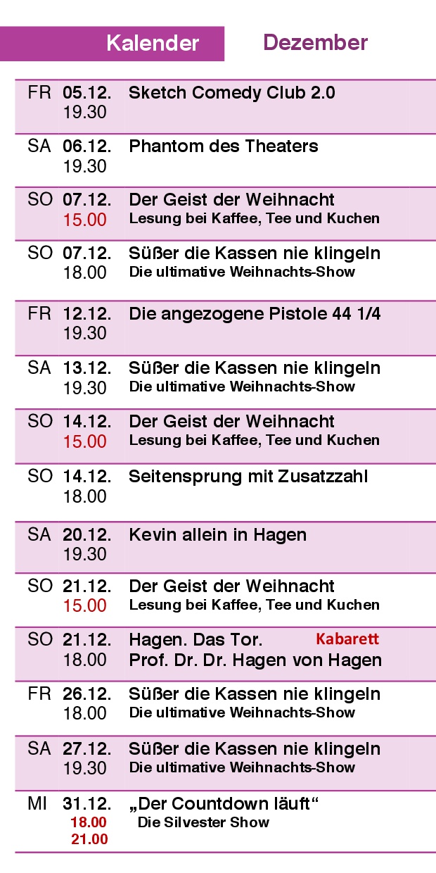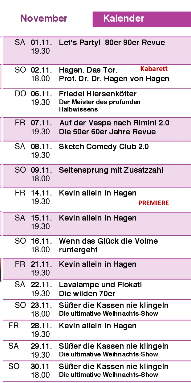 Den Spielplan September bis Dezember 2025 erhalten Sie hier!!